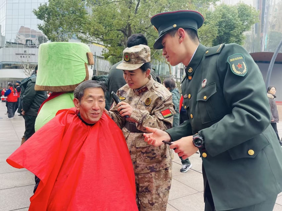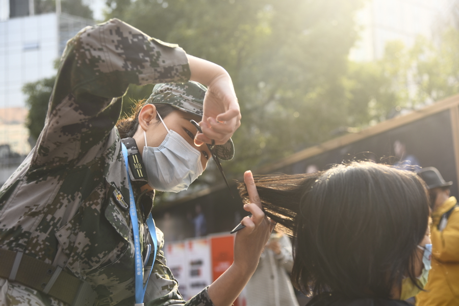 虽然队员们来自不同的岗位,但每月20日,她们都会统一换上“迷彩绿”,在南京路步行街开展为民服务活动。